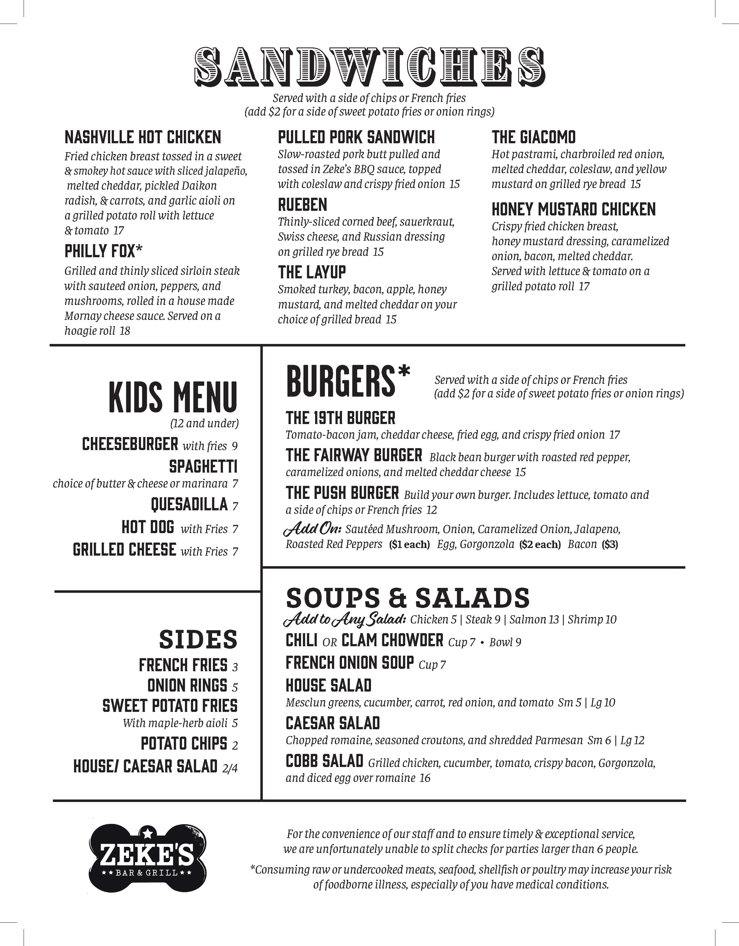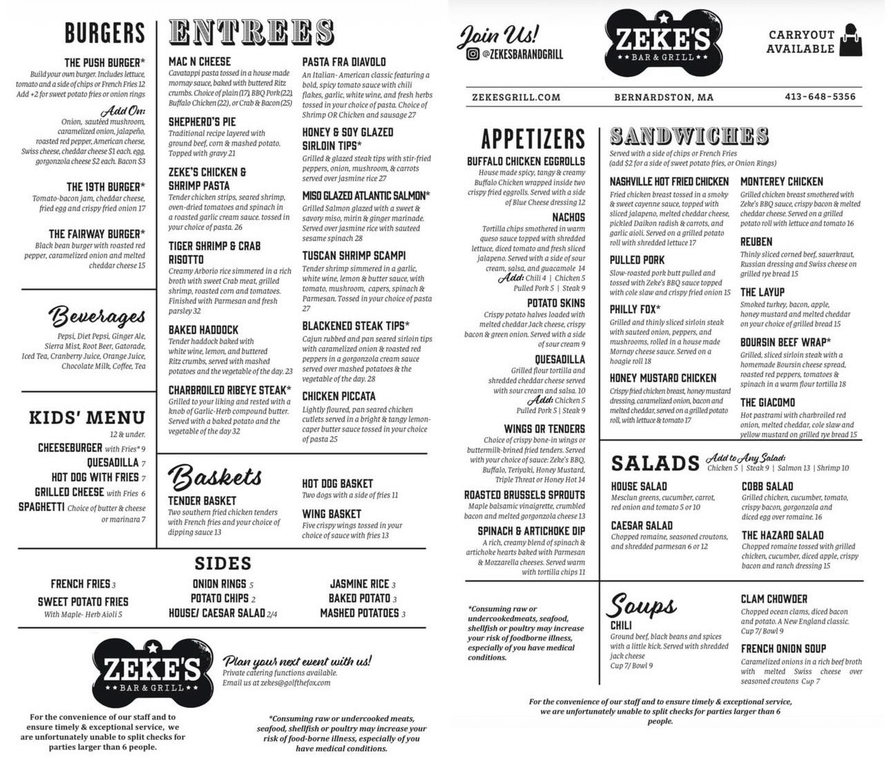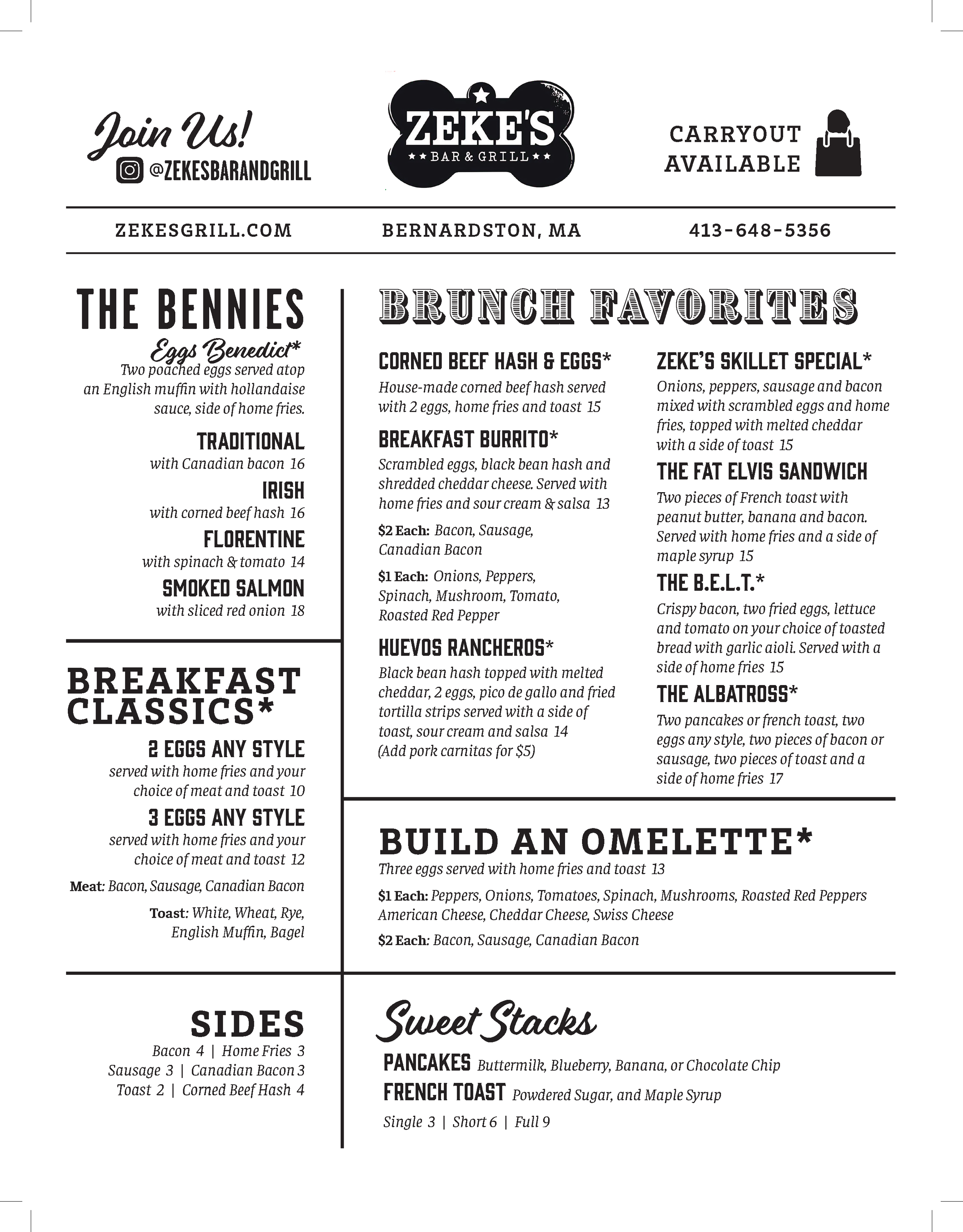 Brunch Menu: (Brunch offered in offseason only, usually November-March)